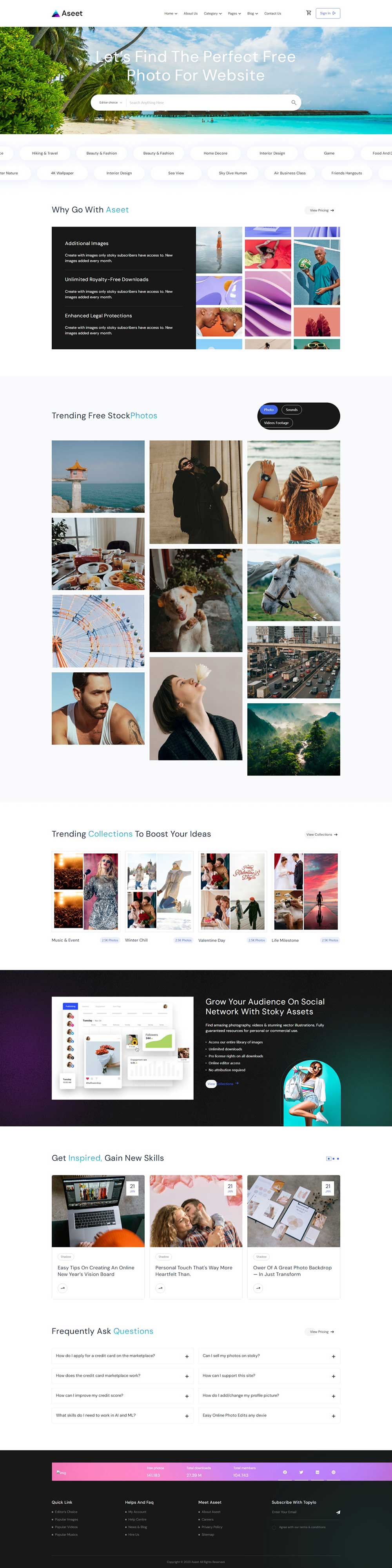 响应式多页面样式,PC+移动端自适应,大气时尚的设计,该模板共包含24个页面,纯静态HTML网页源码,代码简单友好易于修改,跨浏览器兼容性 ,很棒且富有创意的布局,良好的色彩组合,该网页模板为此类企业创建成功网站提供了所需的所有必要页面和功能,数字作品交易市场HTML尖端模板,专为构建蓬勃发展的在线市场而设计。它基本上是一个精致的、新鲜的、诱人的照片库和音频、视频和摄影作品市场模板,设计精美的商业性质HTML模板。