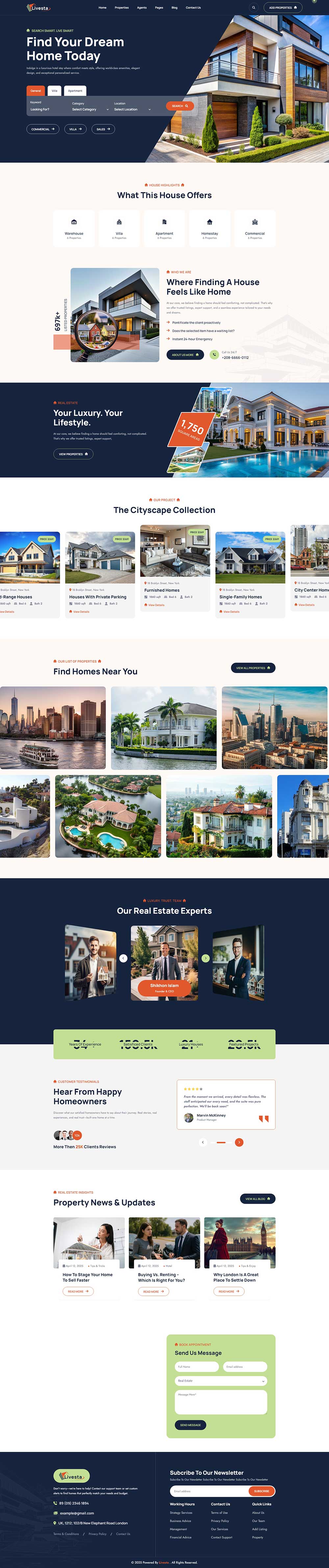 响应式多页面样式,PC+移动端自适应,大气时尚的设计,该模板共包含19个页面,纯静态HTML网页源码,代码简单友好易于修改,跨浏览器兼容性 ,很棒且富有创意的布局,良好的色彩组合,该网页模板为此类企业创建成功网站提供了所需的所有必要页面和功能,现代、干净且的房地产HTML模板,专为房地产中介、房产交易信息门户、房屋租赁和房地产经纪人构建设计精美的商业性质HTML模板。