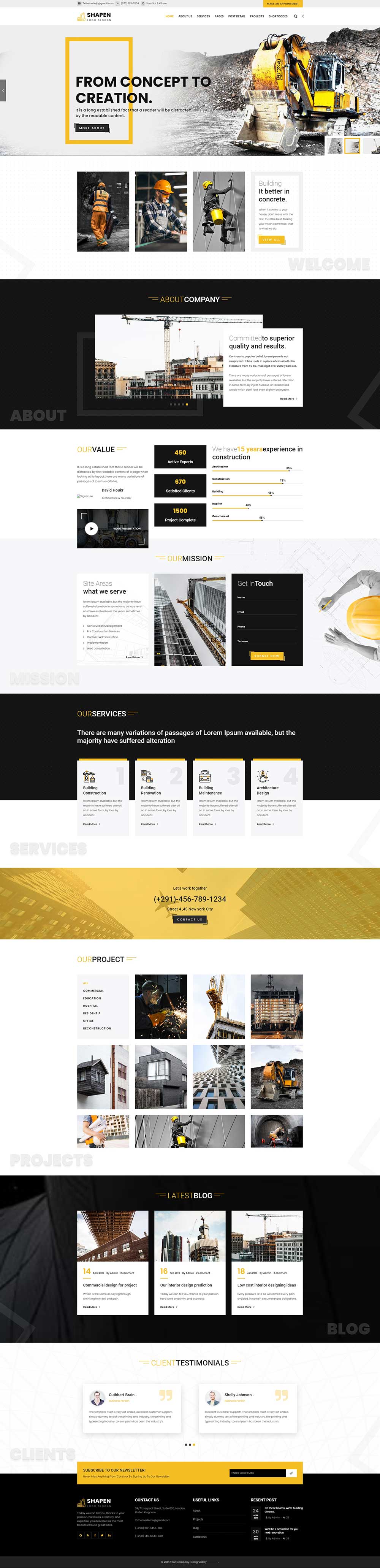 响应式多页面样式,PC+移动端自适应,大气时尚的设计,该模板共包含32个页面,纯静态HTML网页源码,代码简单友好易于修改,跨浏览器兼容性 ,很棒且富有创意的布局,良好的色彩组合,该网页模板为此类企业创建成功网站提供了所需的所有必要页面和功能,干净的建筑公司HTML5响应模板,界面设计很漂亮的企业网站Bootstrap模板,设计精美的商业性质HTML模板。