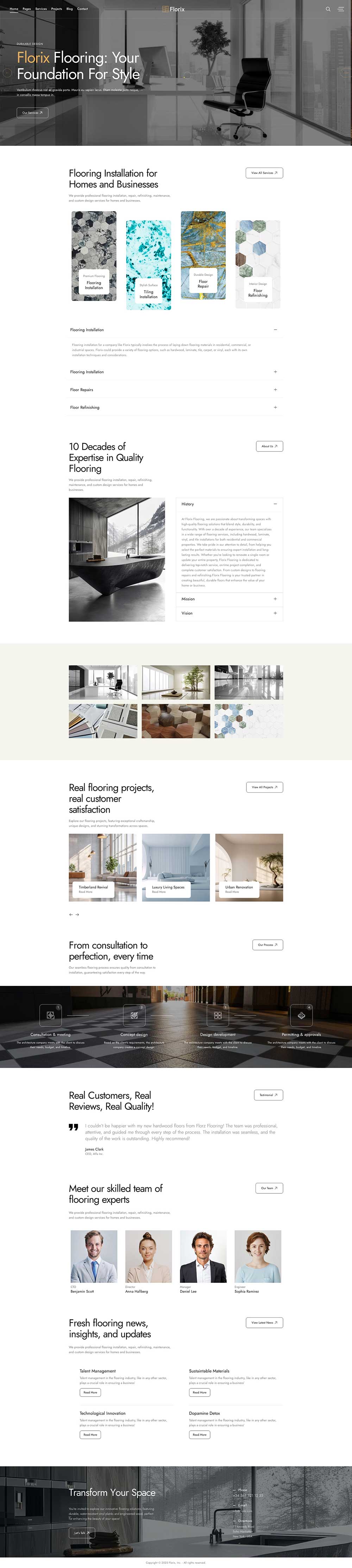 响应式多页面样式,PC+移动端自适应,大气时尚的设计,该模板共包含14个页面,纯静态HTML网页源码,代码简单友好易于修改,地板和瓷砖企业网站HTML模板。此模板使用Bootstrap5框架、HTML5、CSS3和jQuery插件构建,干净、现代和简约的模板,专为所有类型的地板、瓷砖、木制品、木工、家具和室内设计相关公司而构建的。跨浏览器兼容性 ,很棒且富有创意的布局,良好的色彩组合,该网页模板为此类企业创建成功网站提供了所需的所有必要页面和功能,设计精美的商业性质HTML模板。
