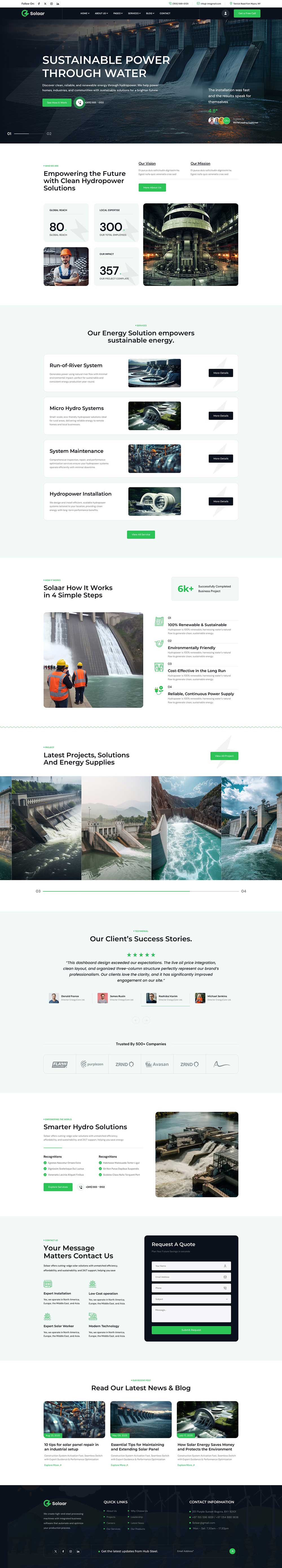 响应式多页面样式,PC+移动端自适应,大气时尚的设计,该模板共包含36个页面,纯静态HTML网页源码,代码简单友好易于修改,跨浏览器兼容性 ,很棒且富有创意的布局,良好的色彩组合,该网页模板为此类企业创建成功网站提供了所需的所有必要页面和功能,专为太阳能、可再生能源和替代能源公司设计精美的商业性质HTML模板。