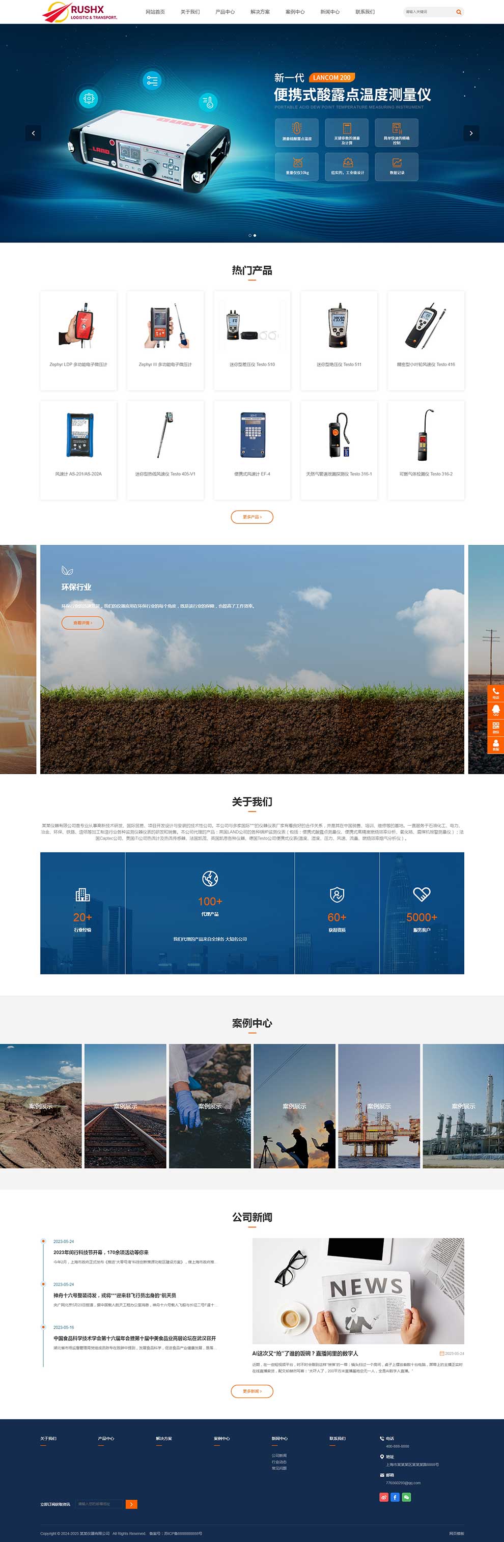 页面包含:网站首页、关于我们、产品中心、产品详情、解决方案、方案详情、案例中心、案例详情新闻中心、新闻详情、常见问题、联系我们
