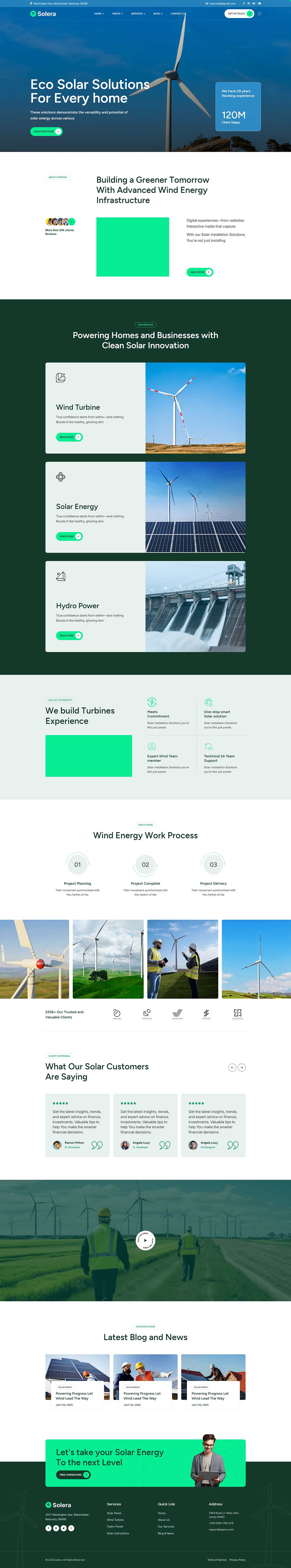 响应式多页面样式,PC+移动端自适应,大气时尚的设计,该模板共包含18个页面,纯静态HTML网页源码,代码简单友好易于修改,跨浏览器兼容性 ,很棒且富有创意的布局,良好的色彩组合,该网页模板为此类企业创建成功网站提供了所需的所有必要页面和功能,新能源开发企业设计,比如太阳能公司、水力发电厂、可再生能源供应商、绿色科技初创公司等,设计精美的商业性质HTML模板。