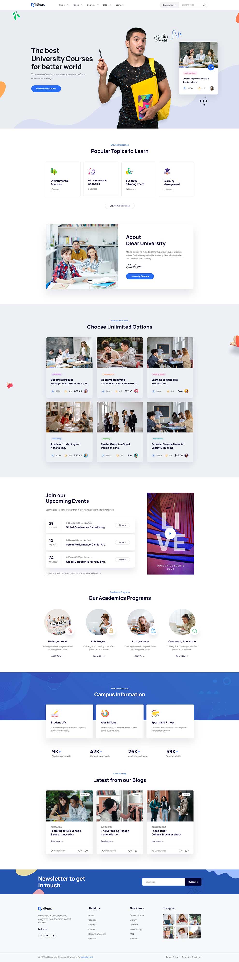 响应式多页面样式,PC+移动端自适应,大气时尚的设计,该模板共包含38个页面,纯静态HTML网页源码,代码简单友好易于修改,跨浏览器兼容性 ,很棒且富有创意的布局,良好的色彩组合,该网页模板为此类企业创建成功网站提供了所需的所有必要页面和功能,通用的教育行业Html模板,适合任何网络课程/在线学习,大学,学校,幼儿园,UI / UX,语言学习计划、课程中心或任何类型的教育机构官网,设计精美的商业性质HTML模板。