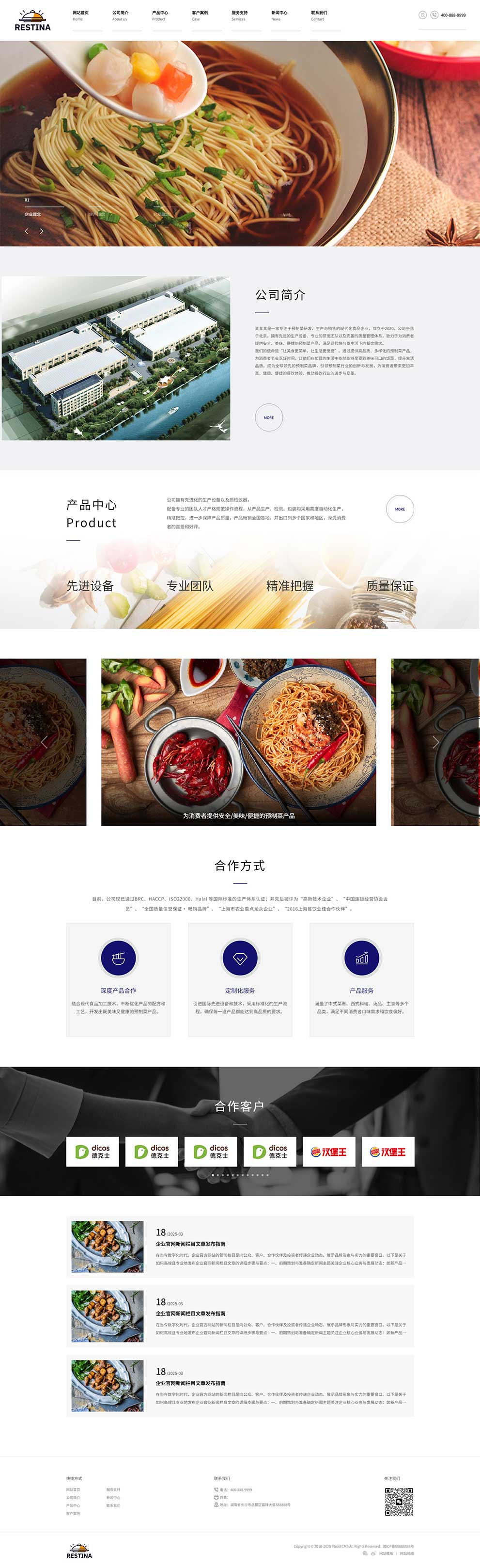 响应式预制菜餐饮厂家企业网站PbootCMS自适应手机端