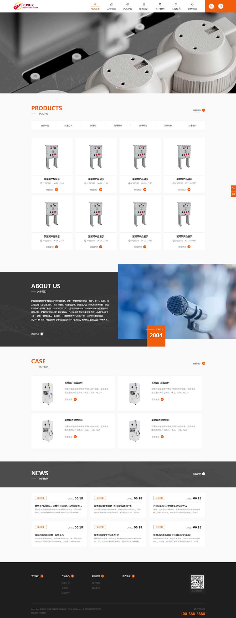 防爆设备控制箱网站Pbootcms模板带三级栏目自适应手机端