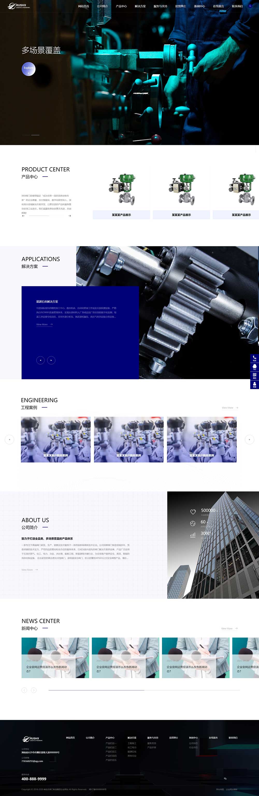 ①、采用pc加手机端设计,风格大气,可在手机端适配,适用于多数企业。