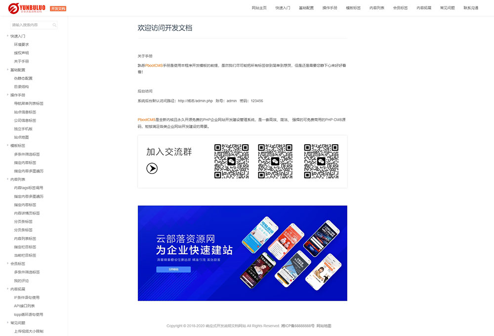 响应式开发说明文档网站PbootCMS模版自适应手机端