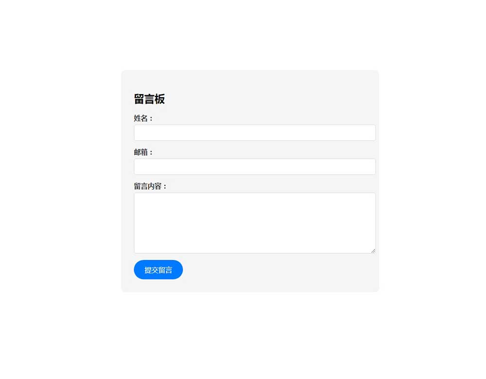 包含留言框和蓝色圆角按钮的HTML示例,包含基本样式和布局。响应式布局(最大宽度600px),表单元素垂直排列,浅灰色背景容器。